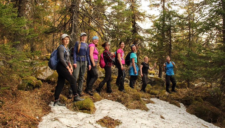 рассвет на Большой Ягодной переход с рюкзаками под вершину 1000 м, лагерь у вершины,