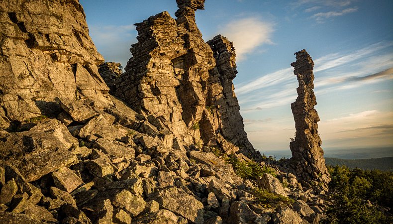 Ветлан – отвесная система скалистых утесов высотой до 263 м. Со смотровой площадки видно изгиб реки Вишеры и гору Полюд, которая напоминает застывшую волну.