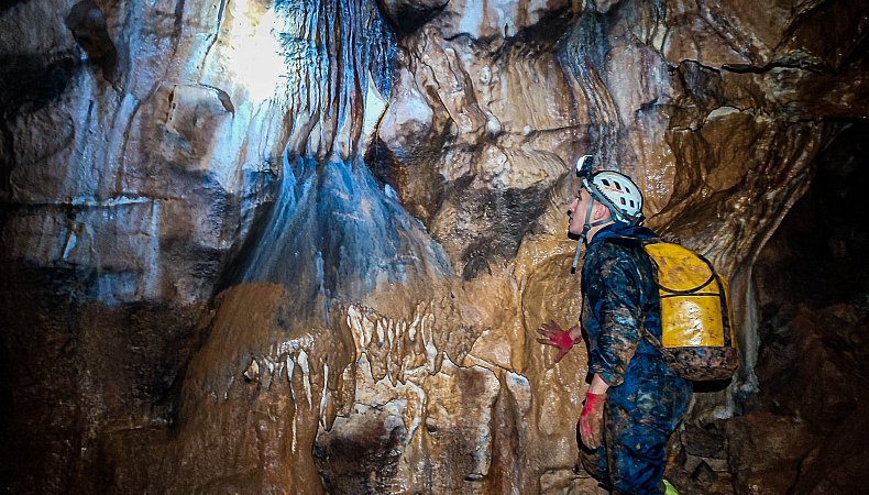 - спелеологический комбинезон (идеально) или комплект одежды, которая не промокает, не жалко испачкать-порвать, не будет цепляться за камни при движении по узким местам