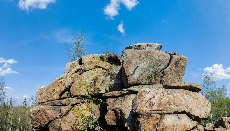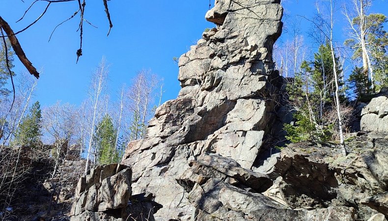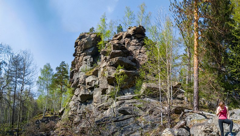 В уютном лесу выросли скальные останцы высотой до 16 метров (5 этажей). Туристы дали им название: Журавлёв камень (Журавка), Окалейский камень, Юрьев камень, Большая Пороховая, Змеева. С некоторых вершинок открывается вид на Леневское водохранилище. Еще одной особенностью места является расщелина шириной 1м, она разрезает скалу на 2 ровные части. Это несложный, но очень живописный маршрут. Когда попадаешь на Юрьев камень, то даже не верится, что такие высокие скальные обрывы могут быть на Среднем Урале.