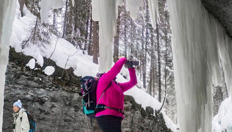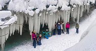 Мельничный ручей - это живописный каньон, с краев которого свисают ледяные сталактиты, образующие хрустальный водопад!