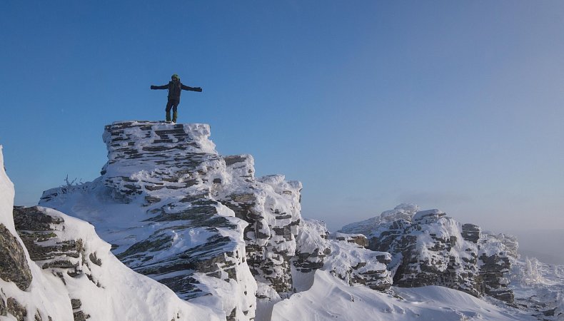 Подъем на вершину Первой сопки пешком, около 2 км протяженностью. При температуре ниже -10, с собой нужно будет взять теплую обувь, чтобы подниматься на вершину в ней, а не лыжных ботинках.