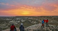 Пятьдесят миллионов лет назад Каспийское, Черное и Аральское море, а так же территории вокруг них, представляли из себя единое водное пространство - океан Паратетис, остаток более древного океана Тетис. В наше время от древнего водоема остались современные моря, озера и огромная часть суши со следами водного прошлого - окаменелые растения, акульи зубы и раковины, застывшие на века следы давно вымерших животных. В степи Прикаспийской низменности врезается огромное плато Устюрт, бывшее океанское дно. Высокий, обрывистый край плато природа тысячелетиями разрушала и преобразовывала. Нам предстоит проехать и пройти через места, где древнейшая история застыла в вечности. Увидеть и окаменелости и фантастические формы эррозии. Пересечь степи и заглянуть в пустыни. Созерцать рассветы, закаты и звездное небо в бескрайних пейзажах, которые больше всего похожи на другую планету!