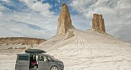 Основная часть маршрута захватывает самые интересные (на наш вкус) достопримечательности полуострова Мангышлак (каз. Мангистау): горы Мангистау (Долина Шаров, Айракты-Шоманай, Шеркала, Кокала), плато Устюрт (Тузбаир, Босжира).