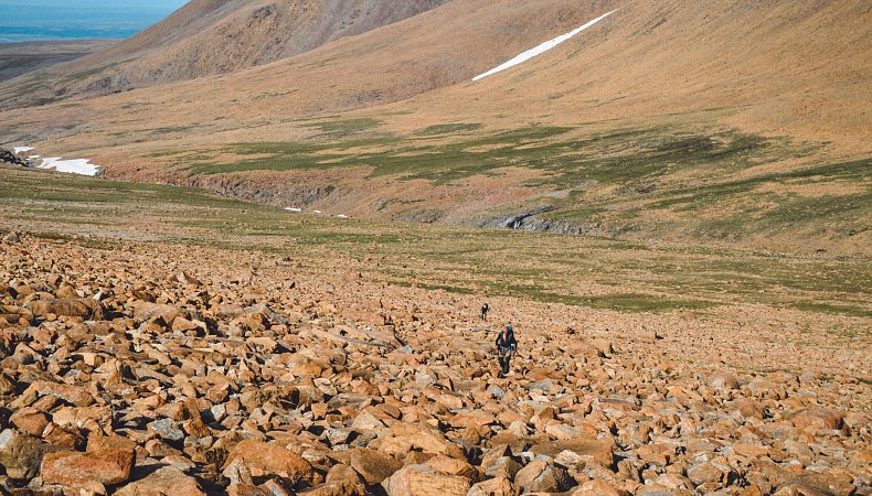 Спускаемся с гор в тундру. Первая половина дня будет сплошным спуском, а к финишу уже окажемся в плоском мире, позади будут радовать виды Пайера и его соседей.