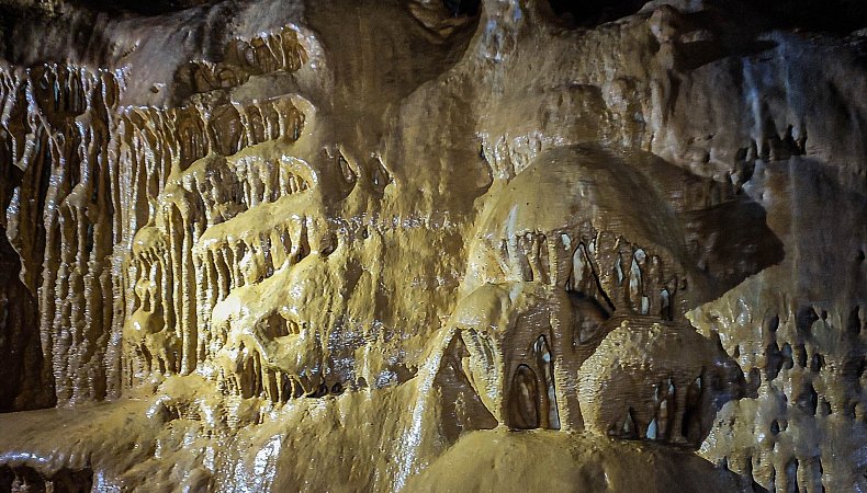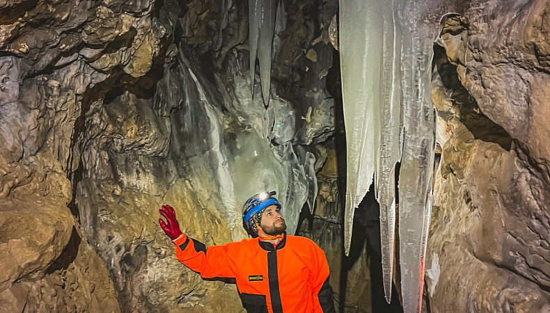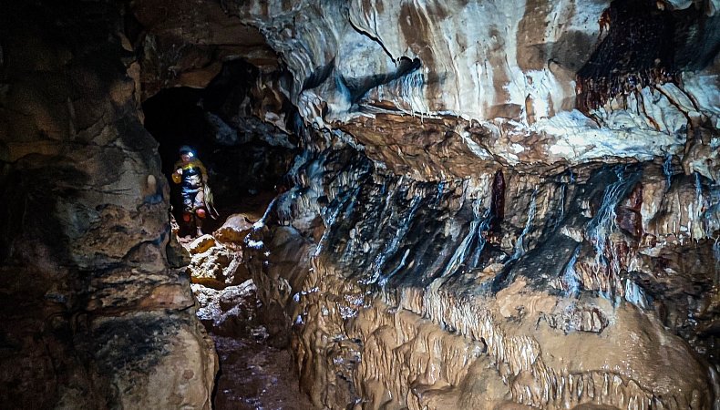 В первой половине пещеры дойдём до грота Ильича, там встречаются узкие места, которые придется проползать. В некоторых местах будем провешивать веревку для подстраховки. Затем выйдем на поверхность и зайдем во второй вход. Вторая половина пещеры - вереница больших гротов, проходится очень быстро. Высота гротов - до 20 метров. Размер такой, что далеко не любым фонарем можно досветить до дальней стены. В галереях много красивых натеков, сталактитов, сталагмитов. Но пещера при всей красоте - сырая и глинистая, поэтому понадобится подходящая одежда и снаряжение.