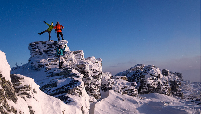Подъем на вершину Первой сопки пешком, около 2 км протяженностью. При температуре ниже -10, с собой нужно будет взять теплую обувь, чтобы подниматься на вершину в ней, а не лыжных ботинках.