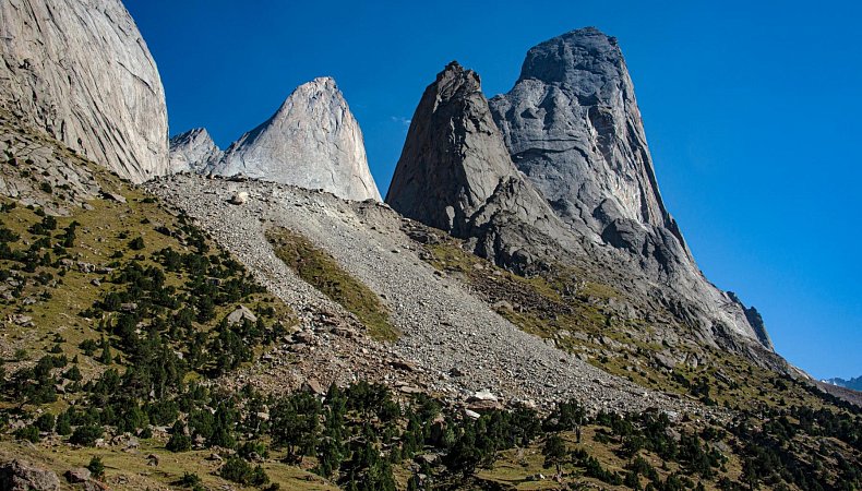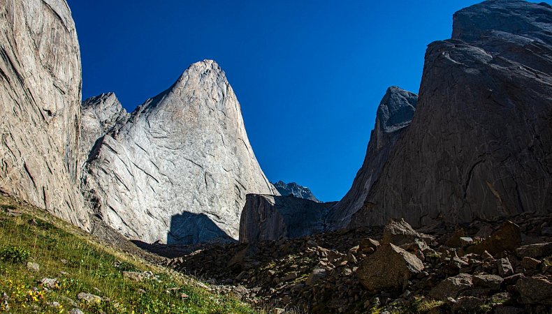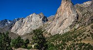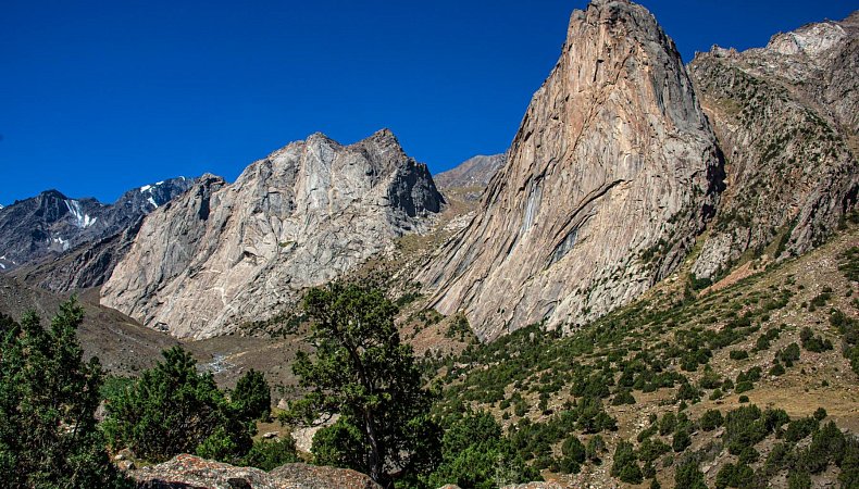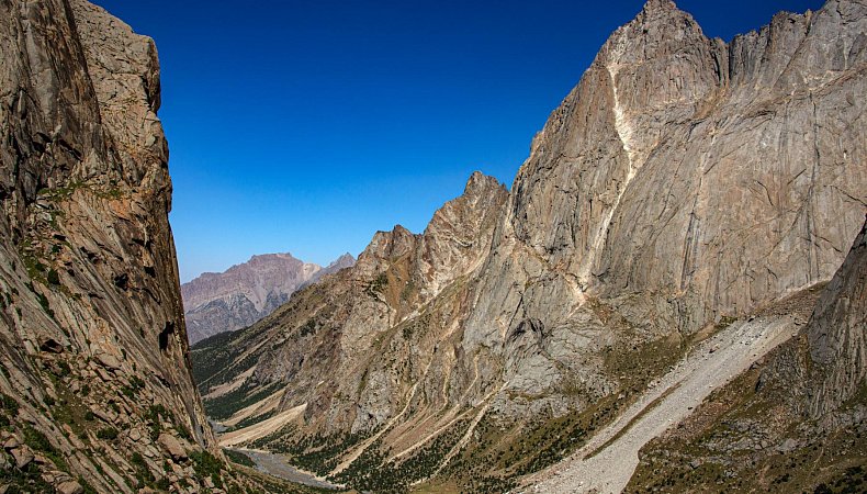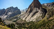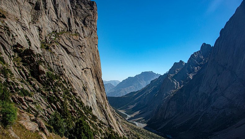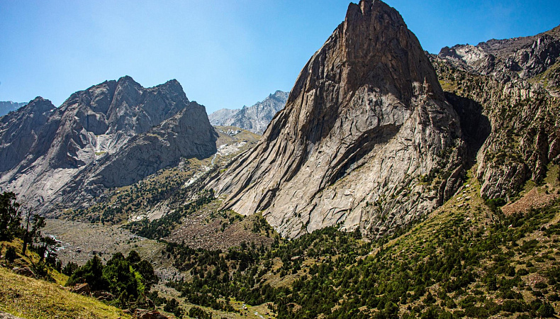 Сегодня переходим с Орто-Чашмы на реку Кара-Суу, ещё один приток Каравшина. По пути пройдем через два соседних перевала. В долине Кара-Суу находятся самые притягательные скалы Асан и Усен, только ради них многие готовы отправиться в это путешествие! А в конце долины вид на пик Пирамидальный - высочайшую гору хребта.