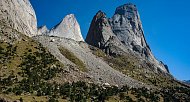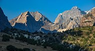 От места стоянки начинается крутой подъем на перевал, по набитой тропе. После перевала небольшой спуск и продолжение подъема по другой долине - реки Ак-Таш. Здесь находятся красивые белые скалы, образующие ворота на нашем пути. Название реки, собственно, так и переводится - белые скалы.
